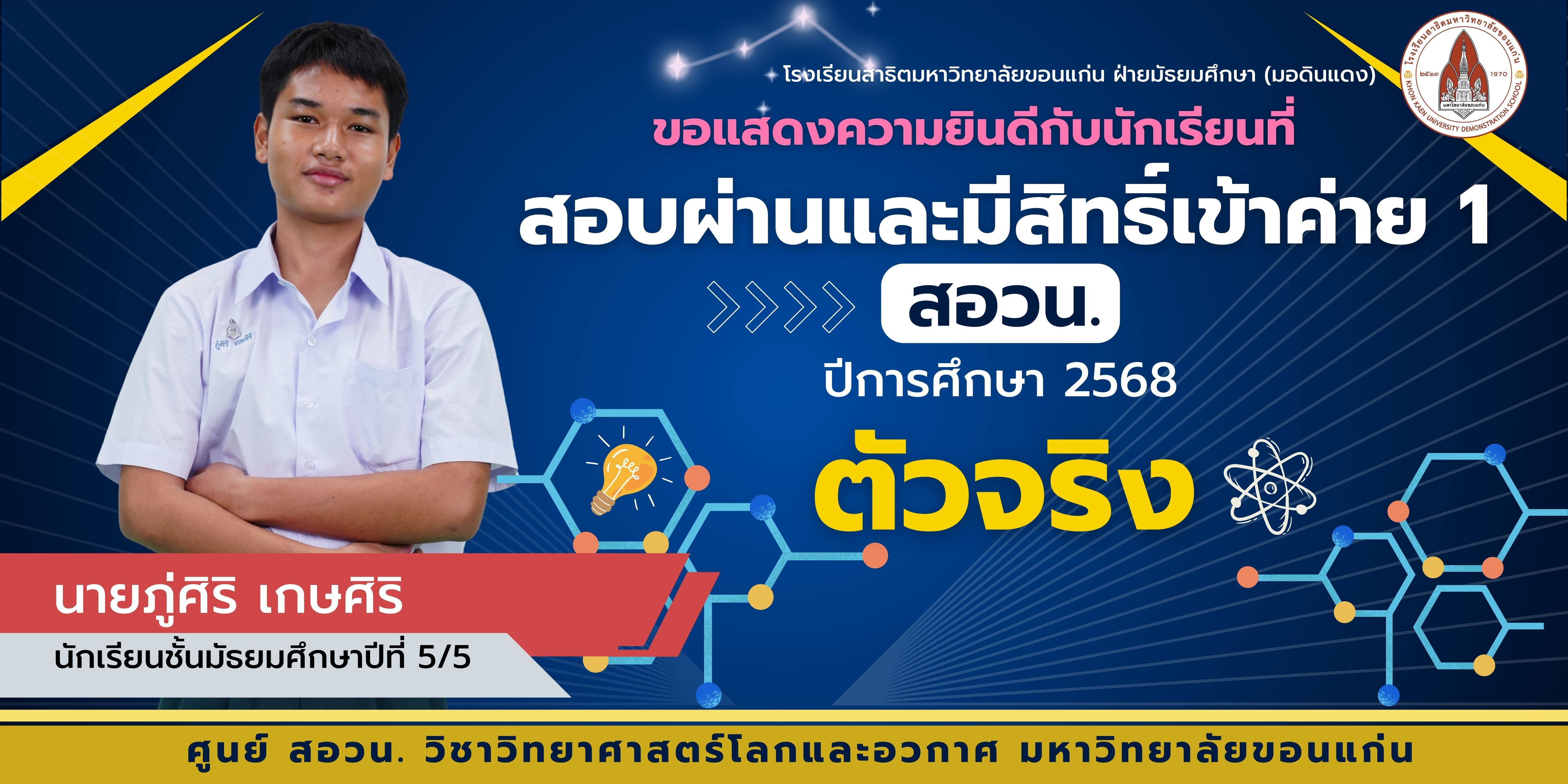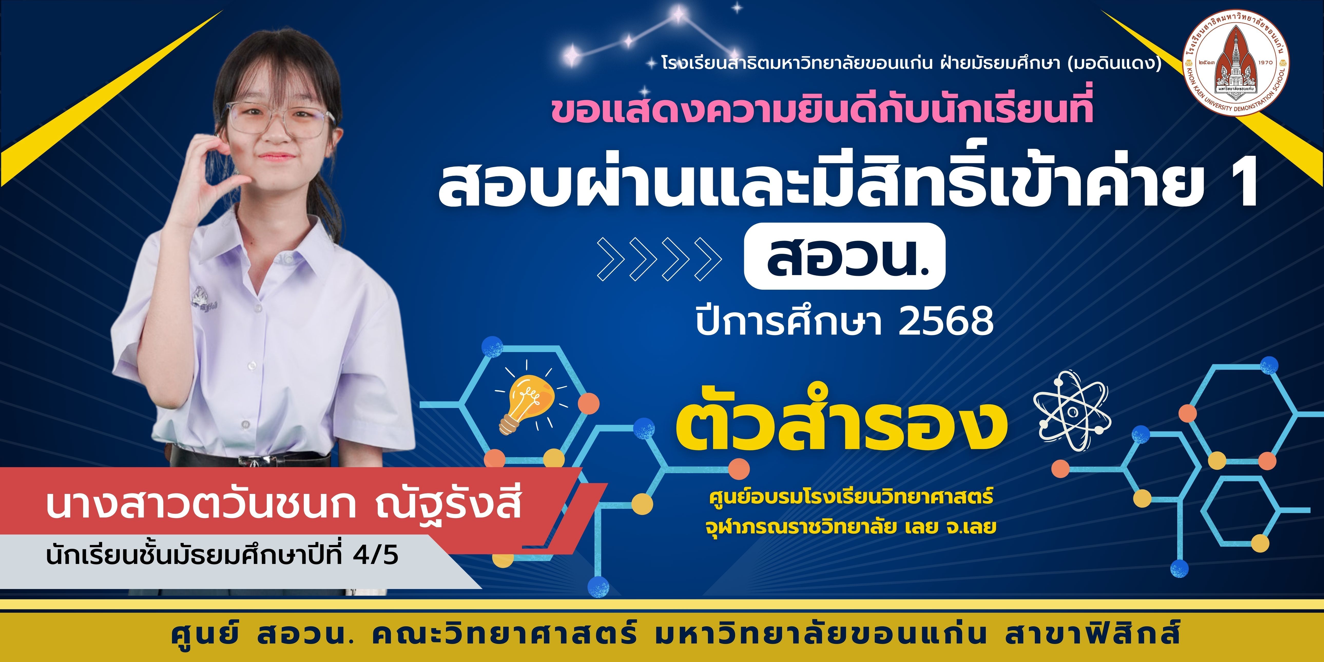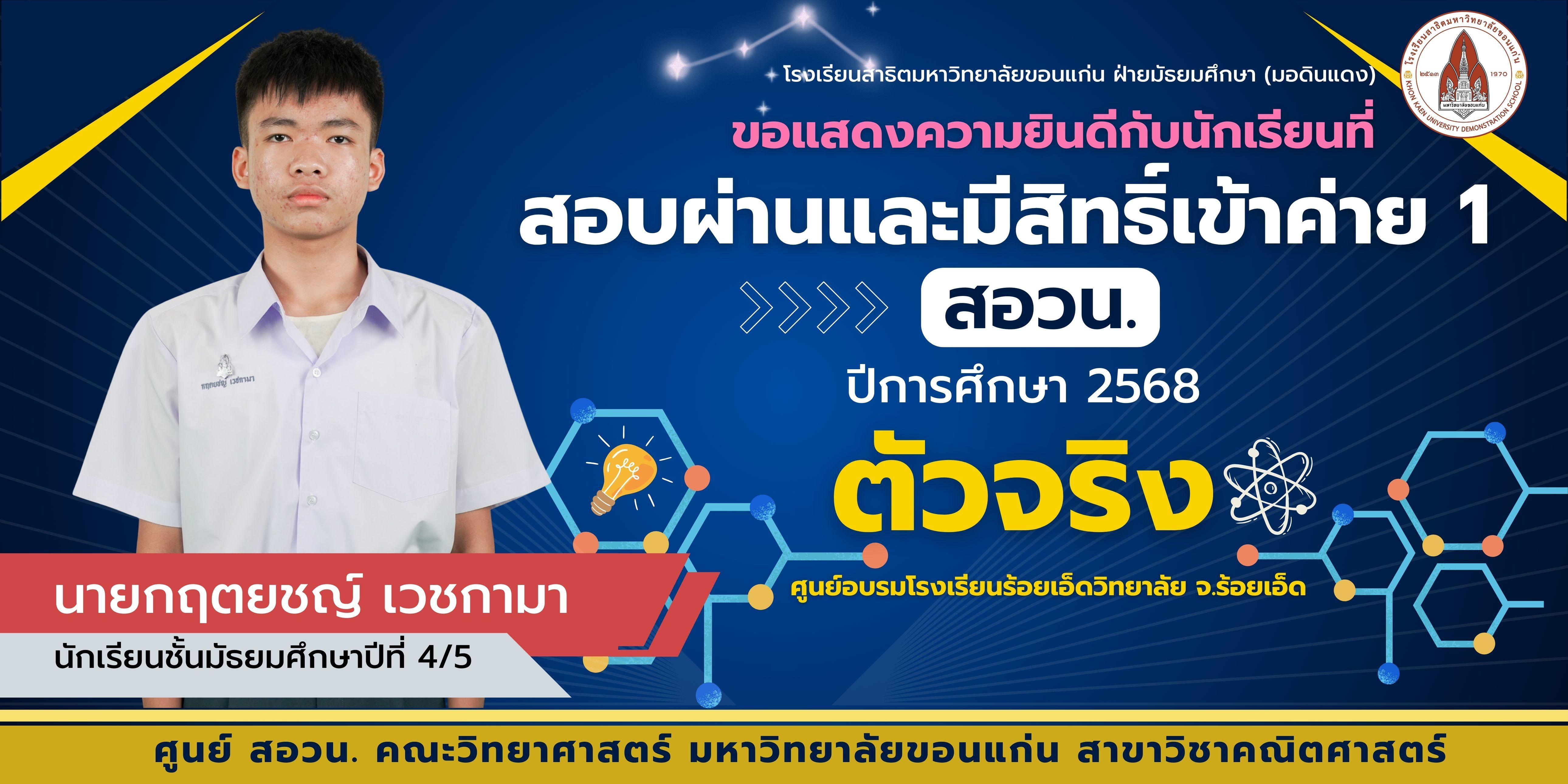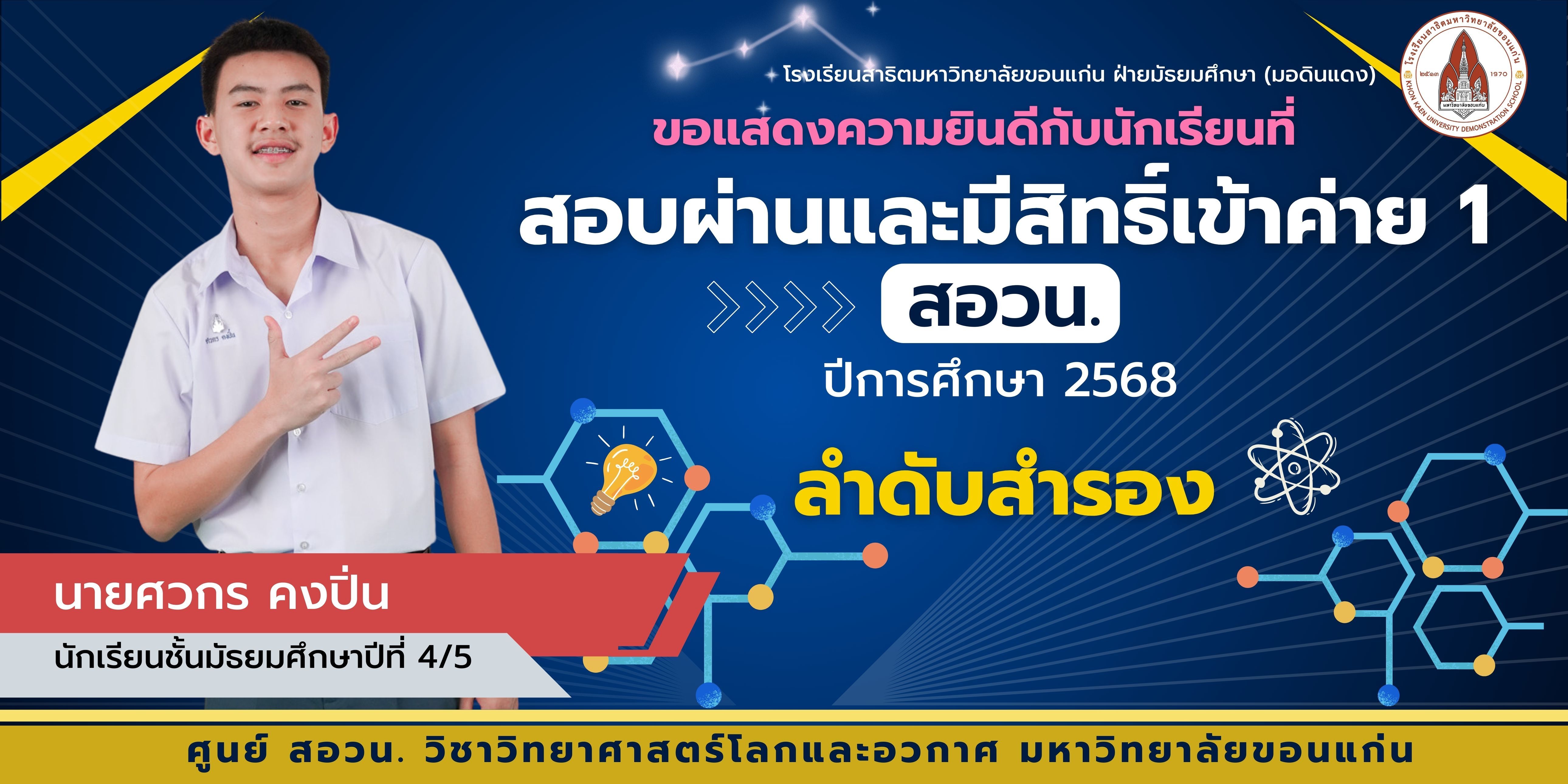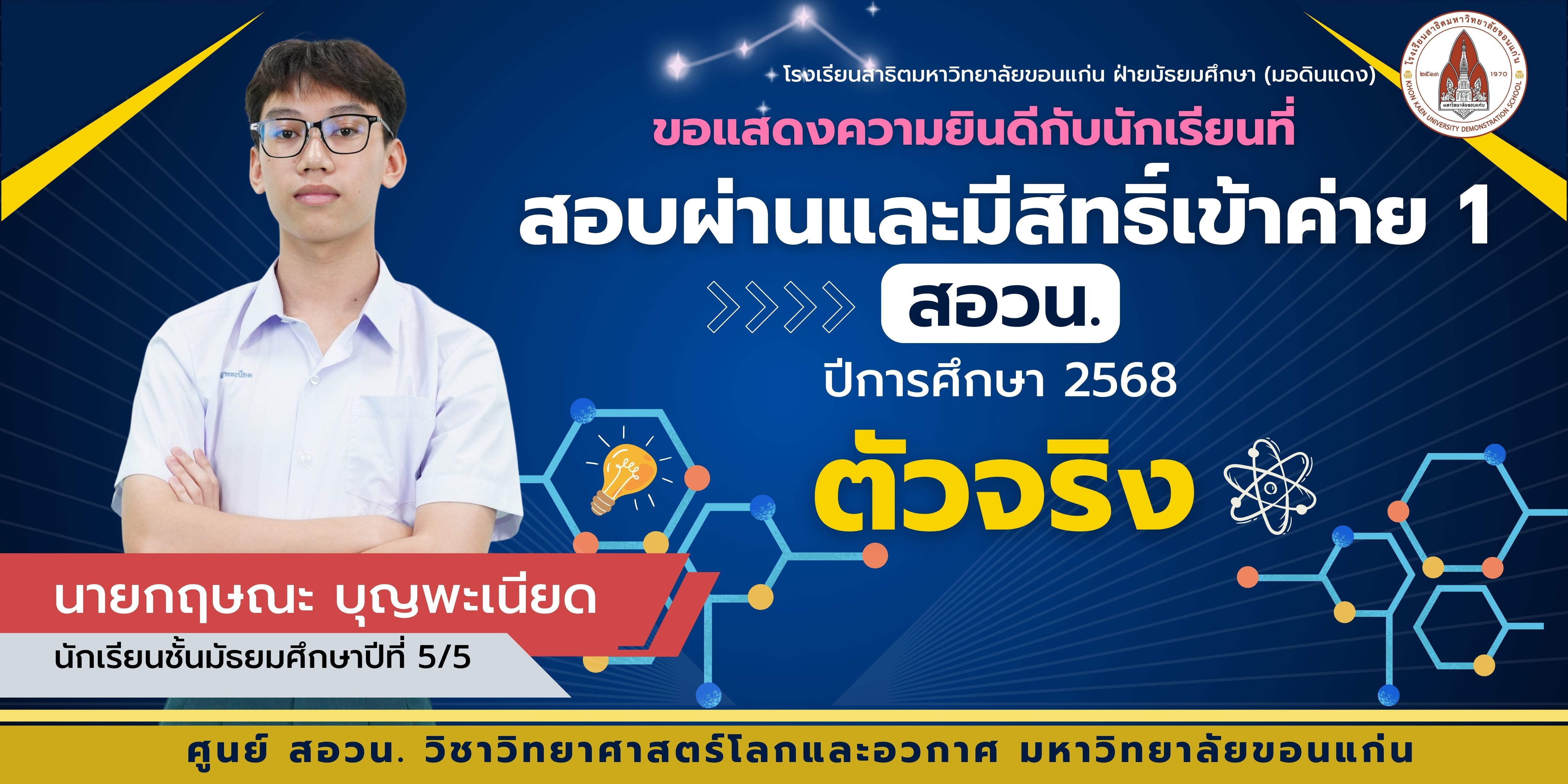 ขอแสดงความยินดีกับนักเรียนที่สอบผ่านและมีสิทธิ์เข้าค่ายโอลิมปิกวิชาการและดาราศาสตร์โอลิมปิกค่าย 1 ปีการศึกษา 2568