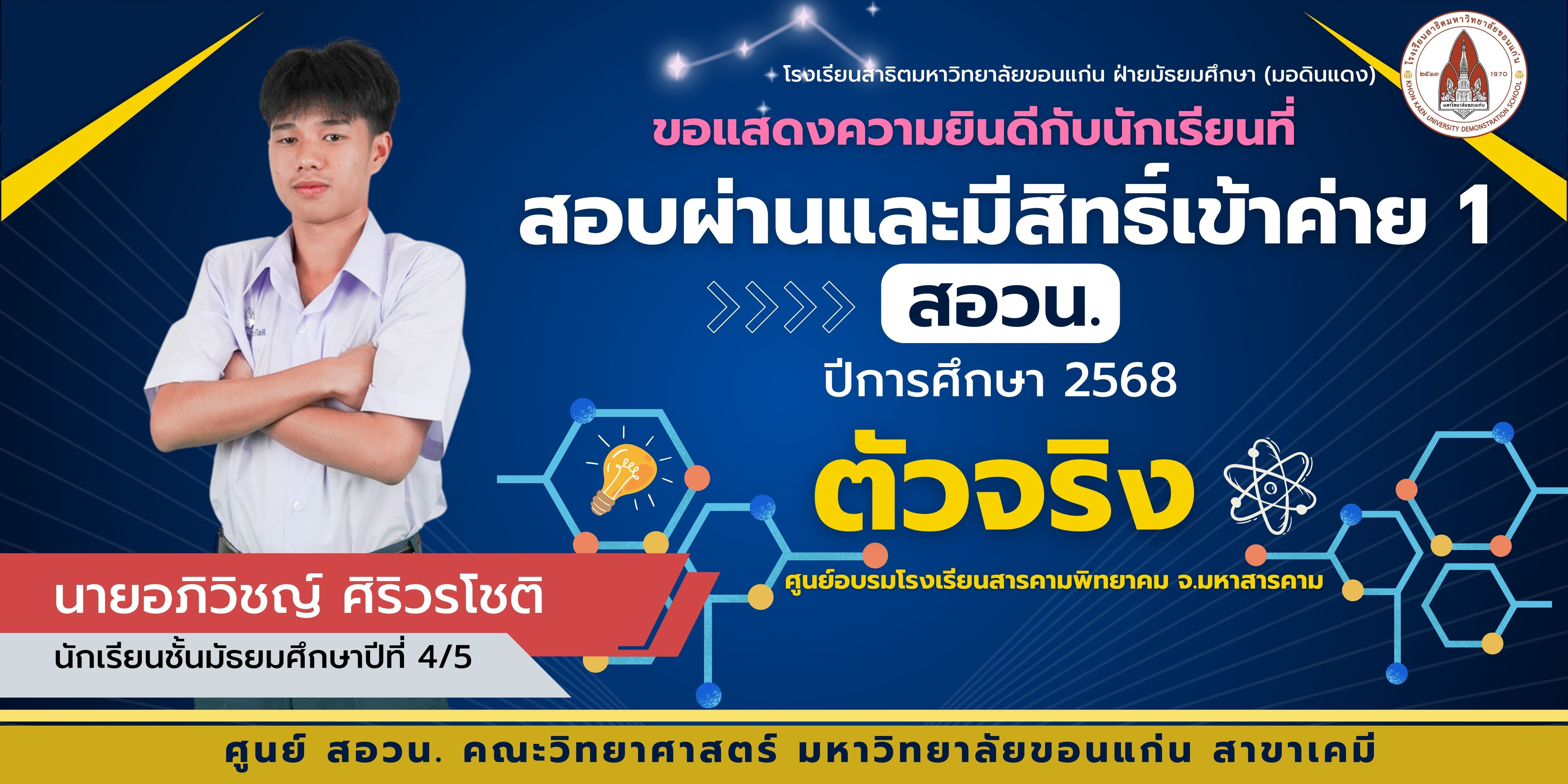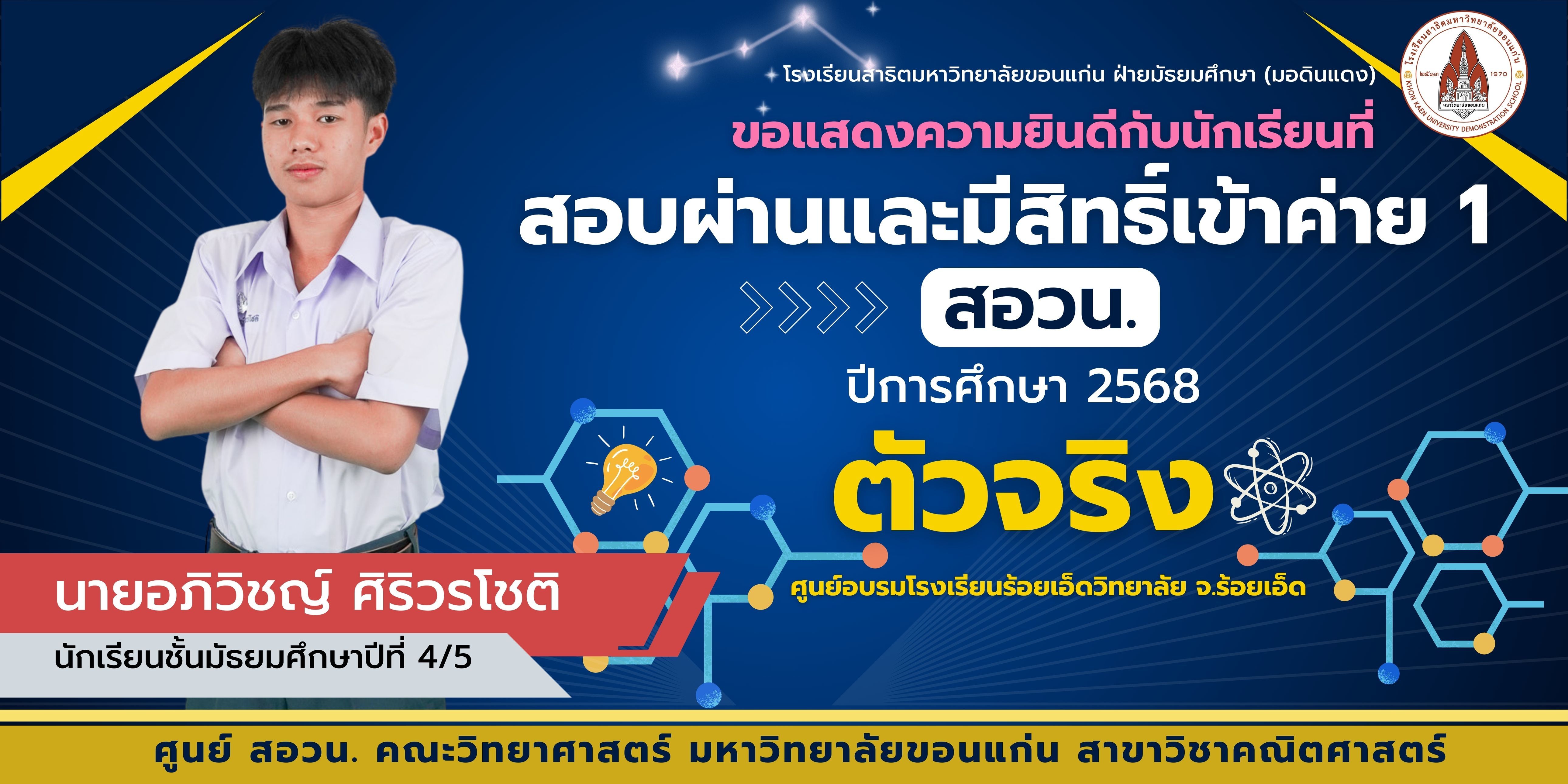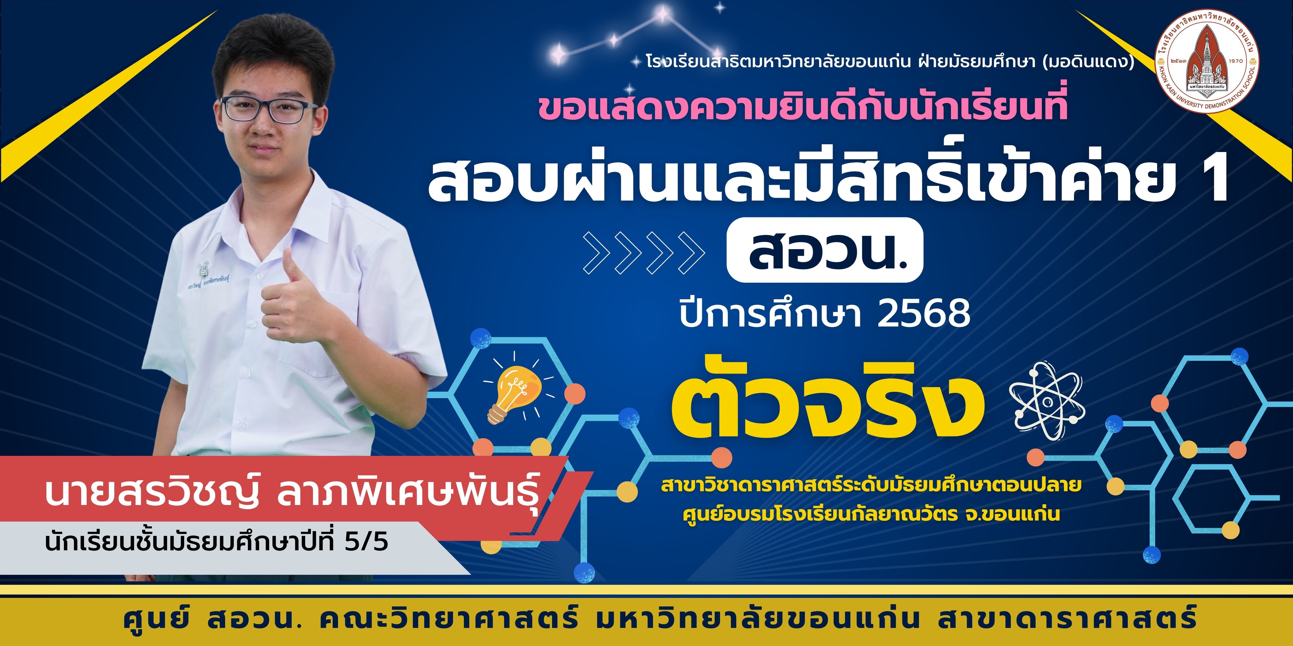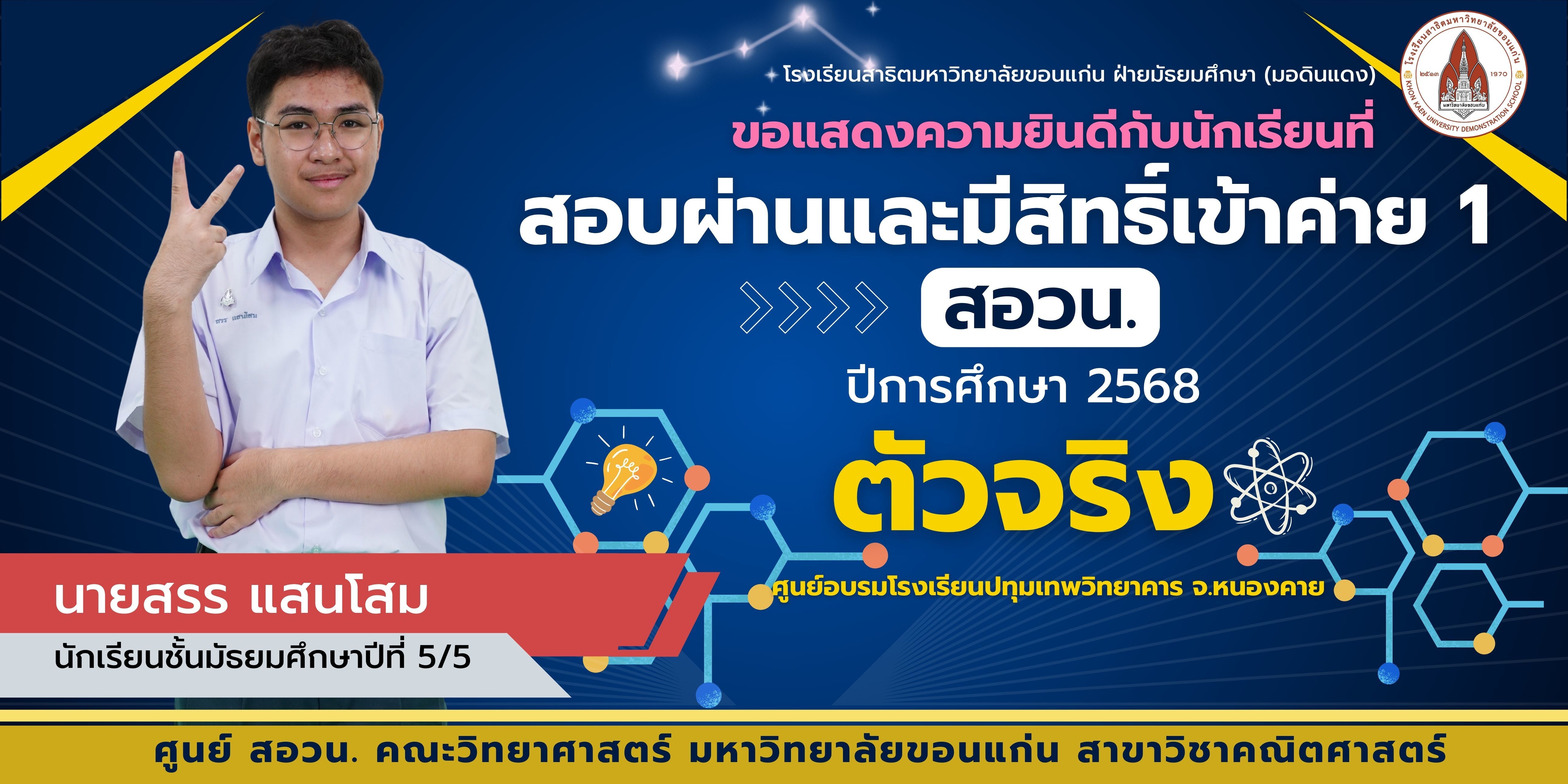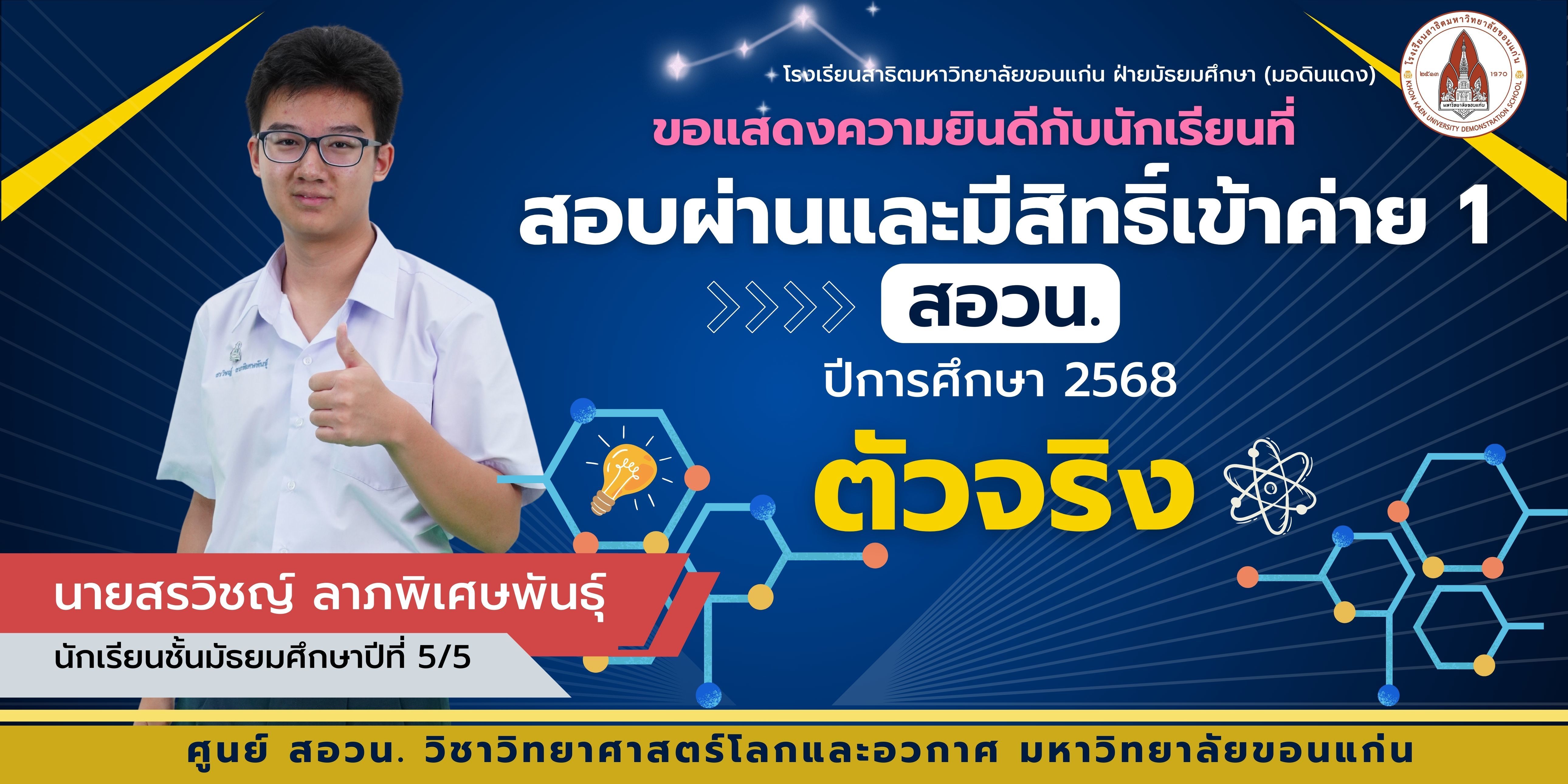 ขอแสดงความยินดีกับนักเรียนที่สอบผ่านและมีสิทธิ์เข้าค่ายโอลิมปิกวิชาการและดาราศาสตร์โอลิมปิกค่าย 1 ปีการศึกษา 2568