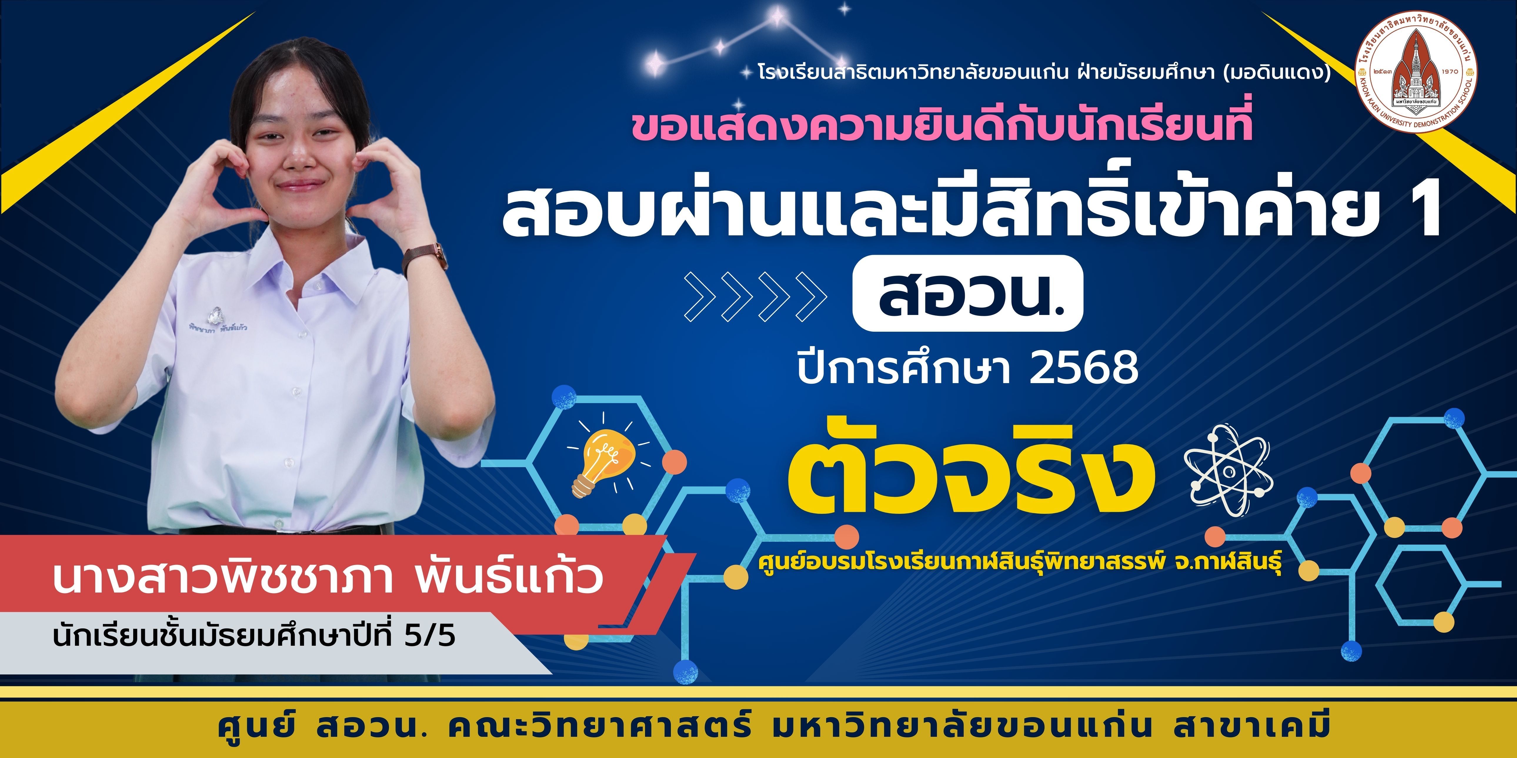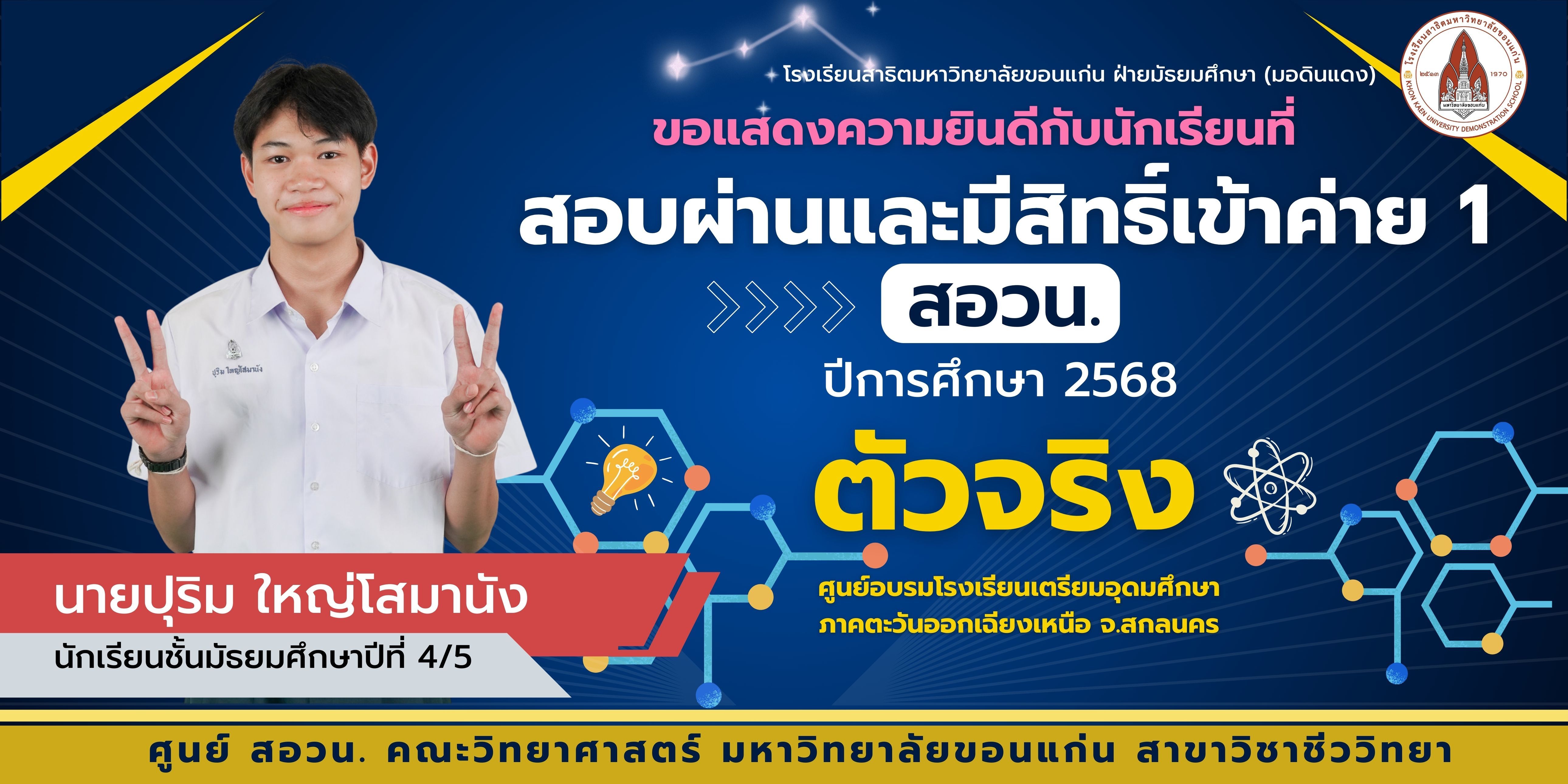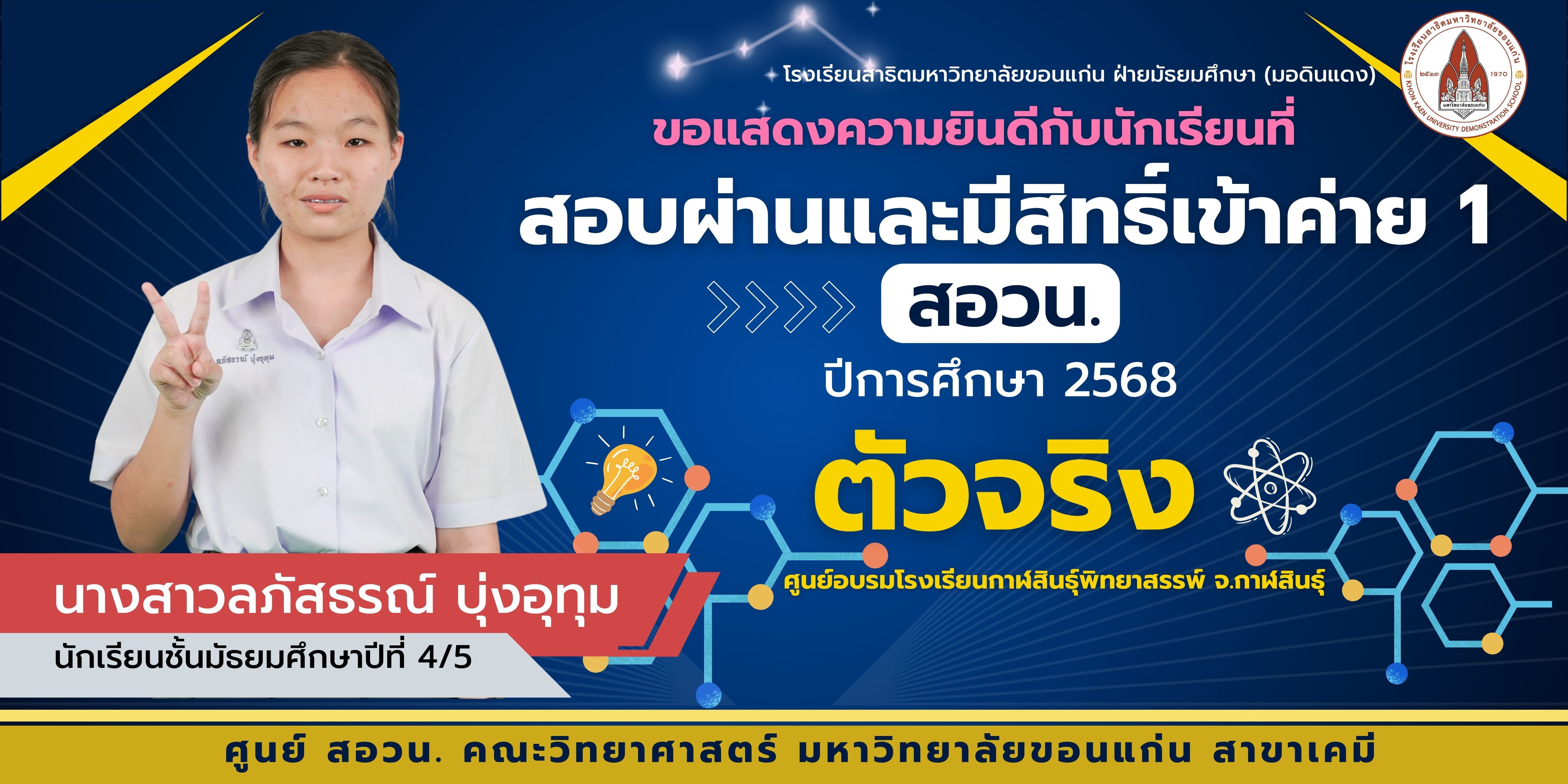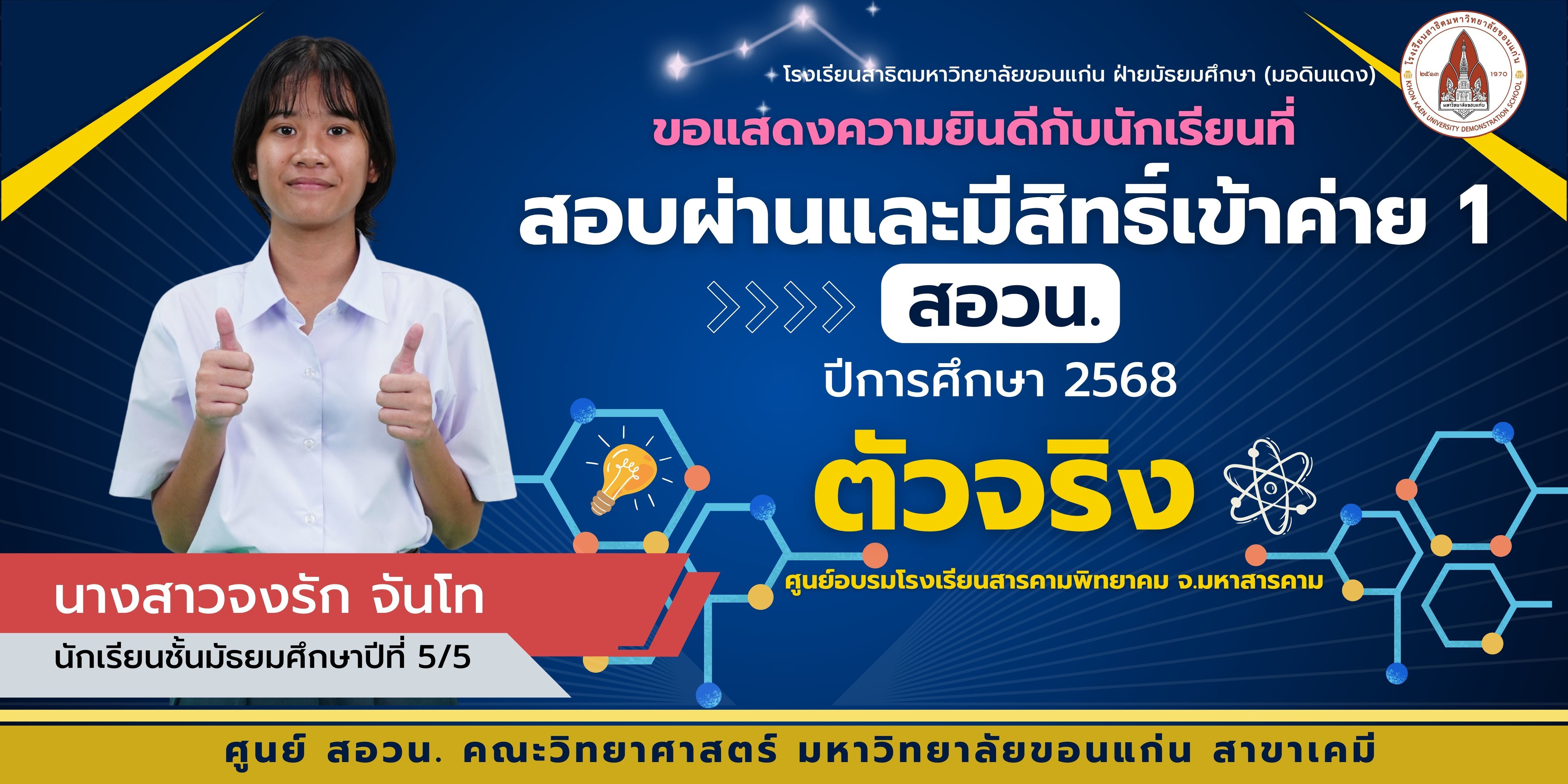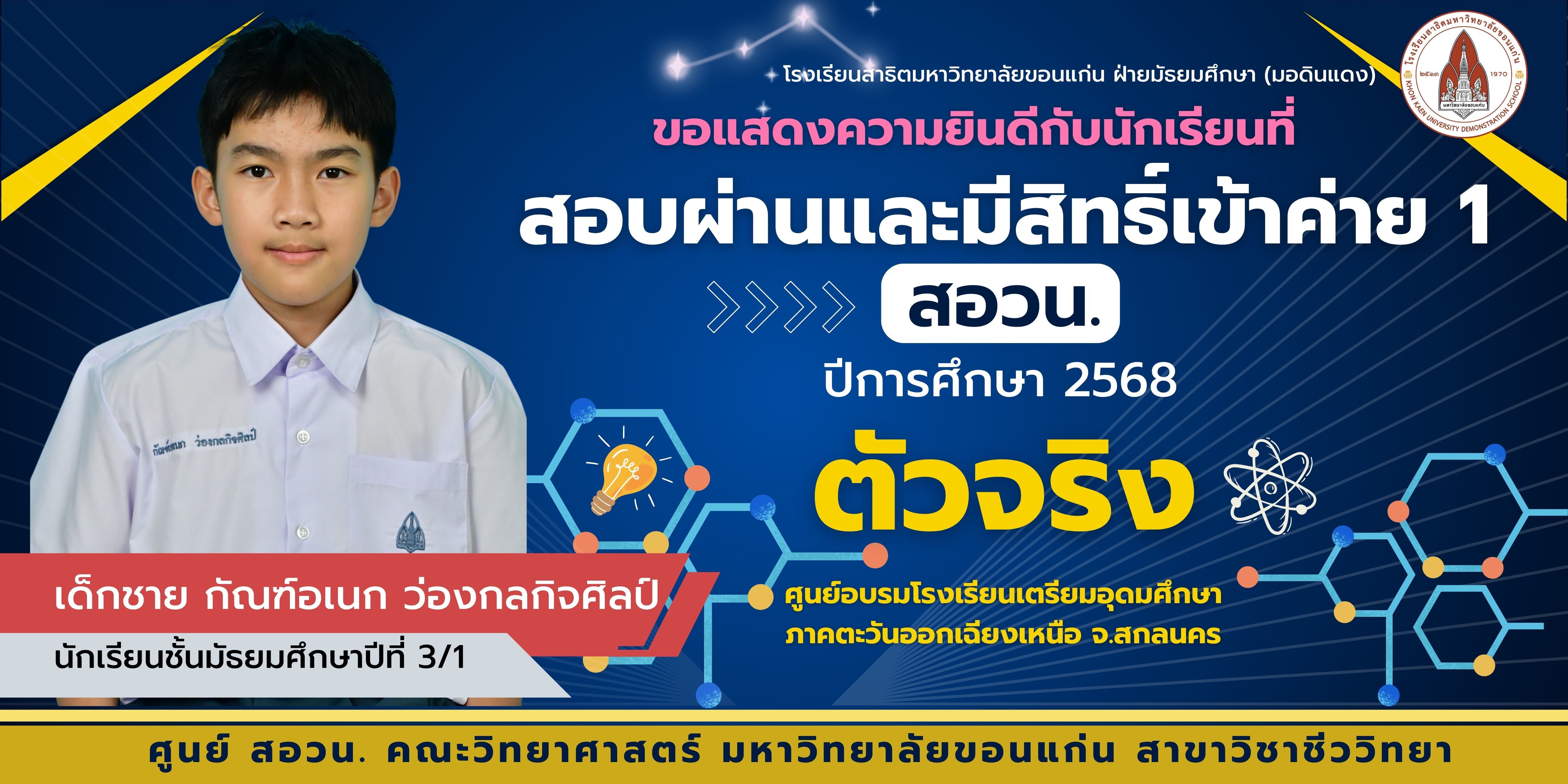 ขอแสดงความยินดีกับนักเรียนที่สอบผ่านและมีสิทธิ์เข้าค่ายโอลิมปิกวิชาการและดาราศาสตร์โอลิมปิกค่าย 1 ปีการศึกษา 2568