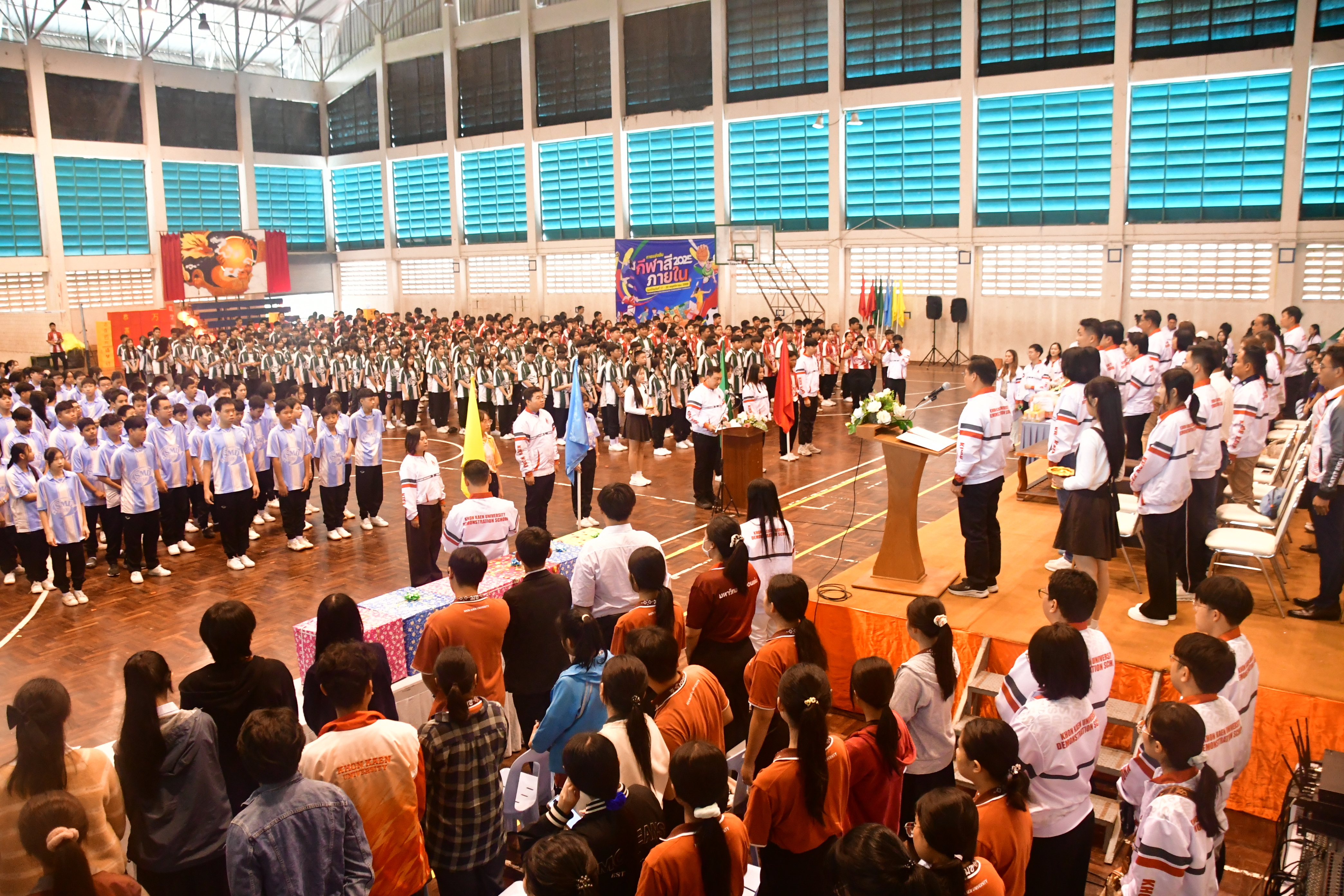 พิธีเปิดจัดขึ้นอย่างเป็นทางการในวันที่ 17 พฤศจิกายน 2568 ณ โรงยิม โรงเรียนสาธิตมหาวิทยาลัยขอนแก่น (มอดินแดง) โดยได้รับเกียรติจาก ผู้ช่วยศาสตราจารย์ ดร.ศราวุธ จักรเป็ง รองคณบดีฝ่ายโรงเรียนสาธิต และผู้อำนวยการโรงเรียนสาธิตมหาวิทยาลัยขอนแก่น เป็นประธานในพิธีกล่าวเปิดกิจกรรม พร้อมรับฟังรายงานการจัดกิจกรรมจาก อาจารย์ ดร.ศักดิสิทธิ์ หัสมินทร์ ประธานจัดกิจกรรมการแข่งขันกีฬาสีภายใน ซึ่งได้กล่าวรายงานวัตถุประสงค์และแนวทางการจัดกิจกรรม หลังพิธีเปิด ได้มีการแข่งขันกีฬาหลากหลายประเภท อาทิ กรีฑา ฟุตบอล วอลเลย์บอล บาสเกตบอล และกีฬาพื้นบ้าน ซึ่งนักกีฬาจากทุกสีได้แสดงศักยภาพ ความมุ่งมั่น และน้ำใจนักกีฬาอย่างเต็มที่ตลอดการแข่งขัน แต่ละสนามเต็มไปด้วยเสียงเชียร์ที่สร้างพลังและความตื่นเต้นให้กับผู้เข้าแข่งขันเป็นอย่างมาก นอกจากนี้ ยังได้รับการสนับสนุนจาก ดร.กวี จรุงทวีเวทย์ ประธานชมรมผู้ปกครองและครู โรงเรียนสาธิตมหาวิทยาลัยขอนแก่น (มอดินแดง) พร้อมทั้งคณะผู้บริหารจาก โรงเรียนสาธิตมหาวิทยาลัยขอนแก่น ฝ่ายมัธยมศึกษา (ศึกษาศาสตร์) และโรงเรียนสาธิตมหาวิทยาลัยขอนแก่น ฝ่ายประถมศึกษา (มอดินแดง) โดยได้ร่วมมอบทุนสนับสนุน รวมถึงขนมและผลไม้สำหรับนักกีฬาทุกคณะสี ตลอดการแข่งขัน นักเรียนได้เข้าร่วมกีฬาในหลายประเภท อาทิ กรีฑา ฟุตบอล วอลเลย์บอล บาสเกตบอล ตลอดจนกีฬาพื้นบ้าน ซึ่งทุกสีได้แสดงศักยภาพ ความทุ่มเท และน้ำใจนักกีฬาอย่างเต็มที่ ขณะที่เหล่ากองเชียร์ก็ร่วมสร้างสีสันและกำลังใจในทุกสนามอย่างอบอุ่น