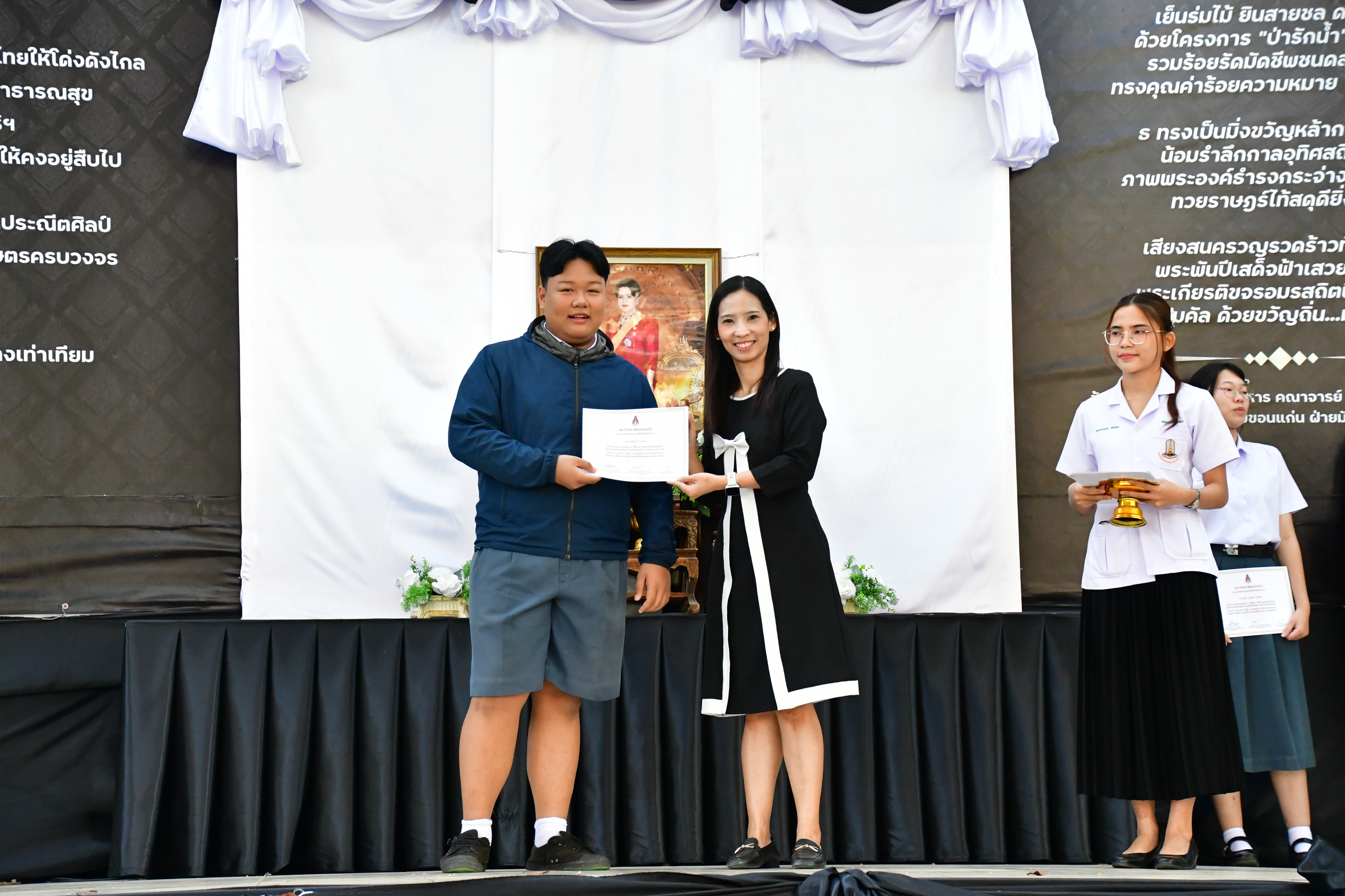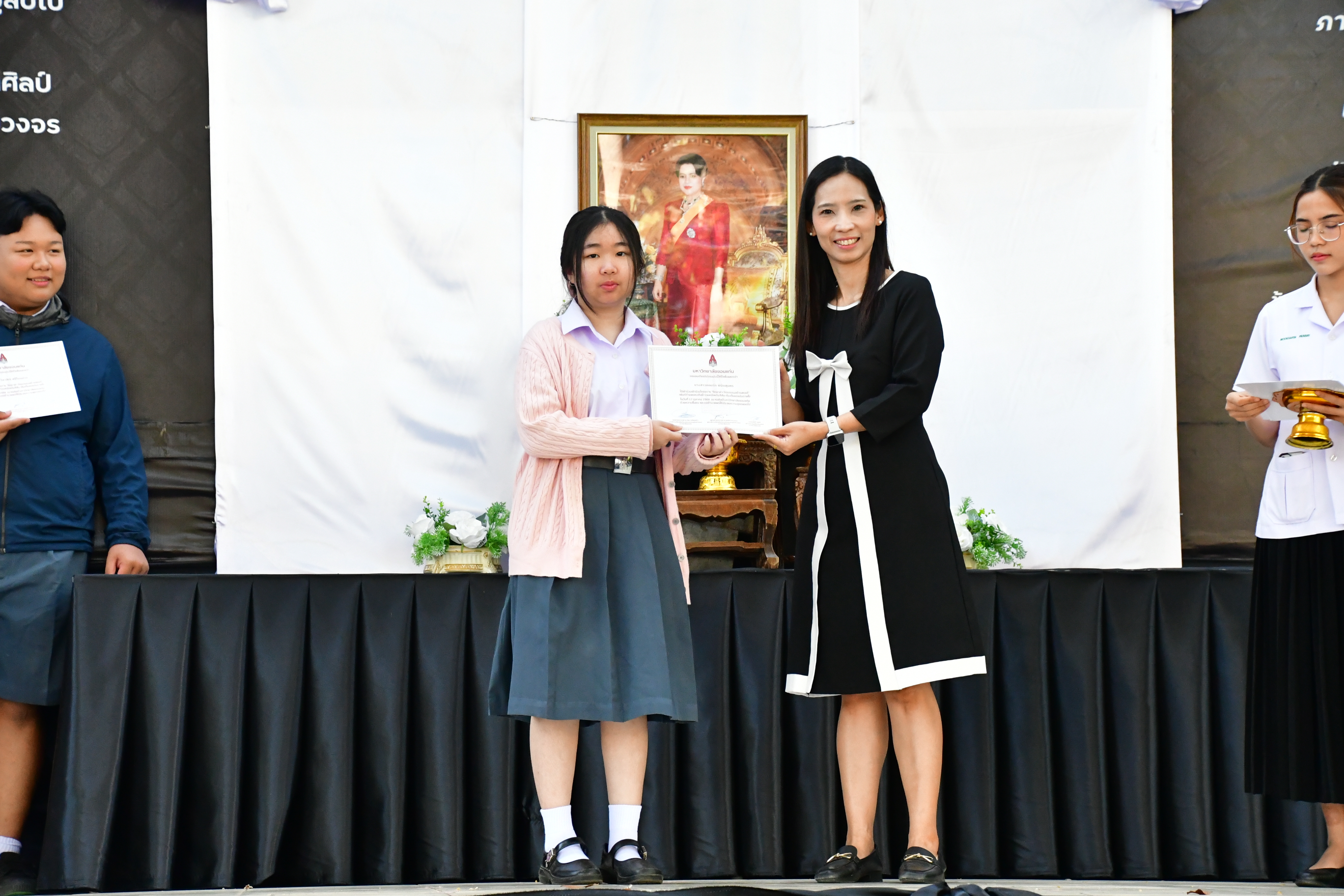 กิจกรรมมอบเกียรติบัตรครั้งนี้ ได้รับเกียรติจาก อาจารย์เบญจวรรณ์ ป้อมแสนศรี ผู้ช่วยผู้อำนวยการฝ่ายวิชาการและวิจัย เป็นผู้มอบเกียรติบัตรและกล่าวชื่นชมในความทุ่มเทของนักเรียนทุกคน ที่ได้ใช้ความสามารถทางศิลปะในการสร้างสรรค์และปรับปรุงภูมิทัศน์ของหอศิลป์ มหาวิทยาลัยขอนแก่น