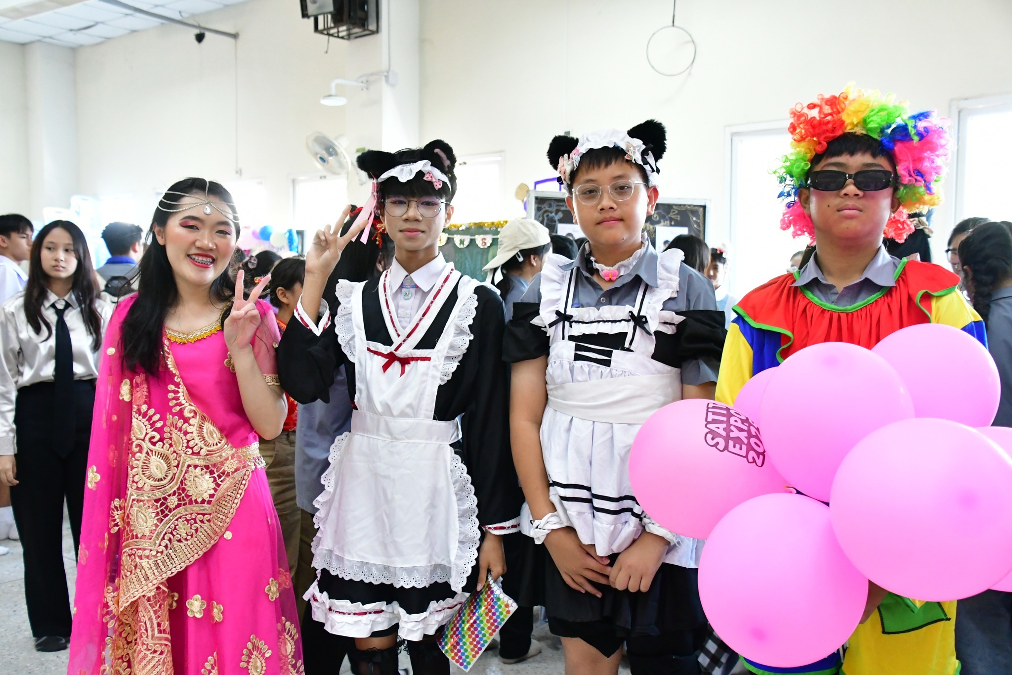 หลังจากนั้นนักเรียนเข้าร่วมซุ้มกิจกรรมภาษาต่างประเทศจำนวน 14 ซุ้ม ซึ่งจัดกิจกรรมโดยนักเรียนห้องส่งเสริมศักยภาพสู่ความเป็นเลิศด้านภาษาอังกฤษ คณิตศาสตร์ และวิทยาศาสตร์ ชั้นปีที่ 1, 2, 4 และ 5 โดยซุ้มกิจกรรมมีการเล่นเกมส์ด้านภาษาและส่งเสริมการเรียนรู้ด้านวัฒนธรรม รวมทั้งยังมีการขายอาหารว่างและเครื่องดื่มให้กับผู้เข้าร่วมกิจกรรม โดยนักเรียนที่เข้าร่วมกิจกรรมนี้ ได้เพิ่มพูนความรู้ทักษะการอ่าน การสื่อสารภาษาต่างประเทศจากประสบการณ์ตรง ผ่านกระบวนการคิดและปฏิบัติจริง พร้อมทั้งสามารถนำมาประยุกต์ใช้ในชีวิตประจำวันได้ นักเรียนมีความสามารถในการคิดวิเคราะห์ คิดอย่างมีวิจารณญาณ อภิปรายแลกเปลี่ยนความคิดและการแก้ปัญหา นักเรียนมีทักษะความคิดสร้างสรรค์ผ่านการแสดงละครนักเรียนมีความรู้ทักษะพื้นฐาน และเจตคติที่ดีต่อภาษาต่างประเทศ มีคุณลักษณะและค่านิยมที่ดีตามสถานศึกษากำหนด