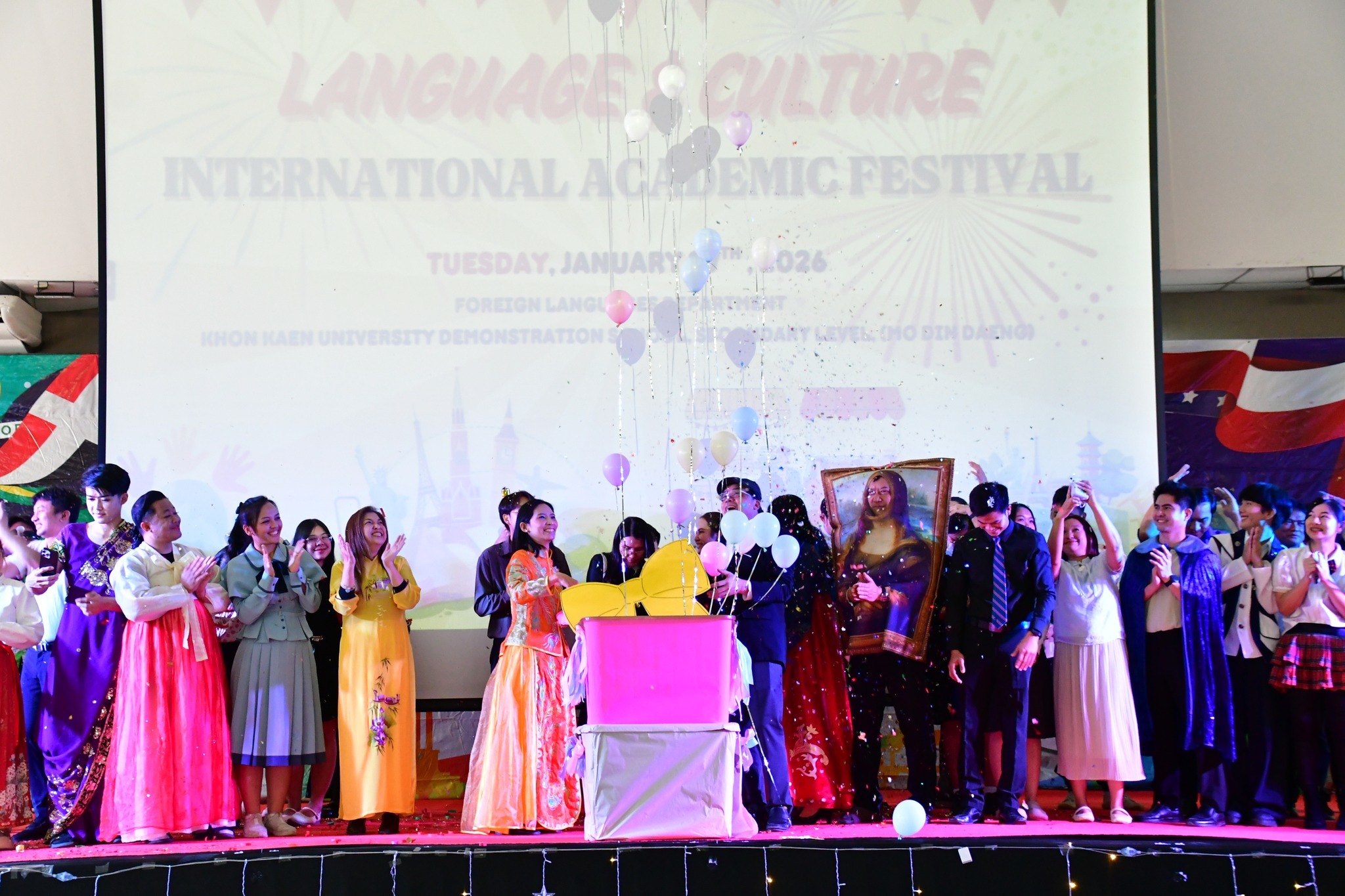 วันที่ 27 มกราคม 2569 กลุ่มสาระการเรียนรู้ภาษาต่างประเทศ จัดกิจกรรม Language and Culture International Academic Festival 2026 นำโดยอาจารย์ธีรภัทร ศิริปรุ ผู้รับผิดชอบกิจกรรม และอาจารย์กลุ่มสาระการเรียนรู้ภาษาต่างประเทศ โดยกิจกรรมนี้มีจุดประสงค์เพื่อให้นักเรียนพัฒนาความสามารถในการสื่อสาร โดยใช้ภาษาอังกฤษ จีน และญี่ปุ่น ส่งเสริมให้นักเรียนตระหนักถึงความสำคัญของภาษาต่างประเทศ และสามารถอยู่ร่วมกันในสังคมแห่งความแตกต่างและความหลากหลายได้อย่างสร้างสรรค์