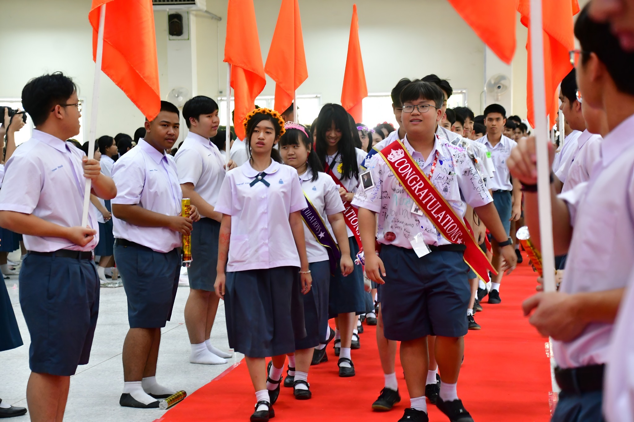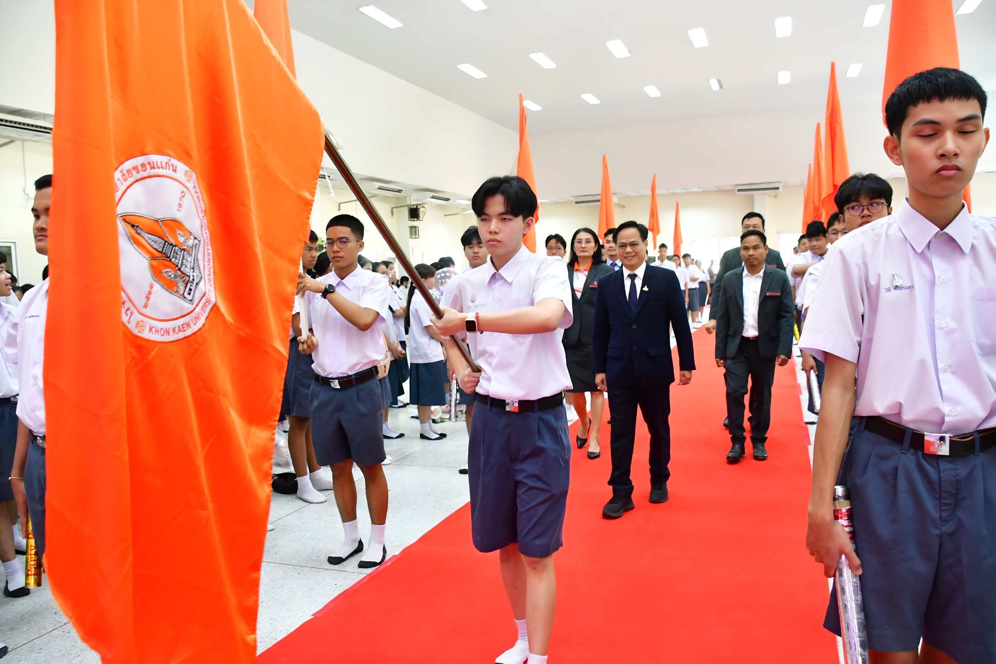 เมื่อวันศุกร์ที่ 20 กุมภาพันธ์ พ.ศ. 2569 โรงเรียนสาธิตมหาวิทยาลัยขอนแก่น ฝ่ายมัธยมศึกษา (มอดินแดง) ได้จัดกิจกรรม “พิธีปัจฉิมนิเทศนักเรียนระดับชั้นมัธยมศึกษาปีที่ 3 และ 6 ประจำปีการศึกษา 2568” ณ โรงอาหารของโรงเรียน เพื่อร่วมแสดงความยินดีและส่งต่อแรงบันดาลใจให้แก่ผู้สำเร็จการศึกษา บรรยากาศในช่วงเช้าเริ่มต้นขึ้นอย่างอบอุ่น โดยนักเรียนระดับชั้น ม.3 และ ม.6 ได้ลงทะเบียนถ่ายภาพหมู่ร่วมกับคณะผู้บริหารและคณาจารย์ ณ สนามบาสเกตบอล เพื่อบันทึกภาพแห่งความทรงจำก่อนจบการศึกษา สำหรับกิจกรรมในช่วงบ่ายเป็นพิธีการสำคัญ เริ่มต้นด้วยขบวนแสดงความภาคภูมิใจแก่ศิษย์ผู้สำเร็จการศึกษา โดยคณะผู้บริหารและคณาจารย์นำนักเรียนเดินลอดซุ้มธงสถาบันเข้าสู่บริเวณพิธี ท่ามกลางเสียงเพลงประจำสถาบันที่กึกก้อง